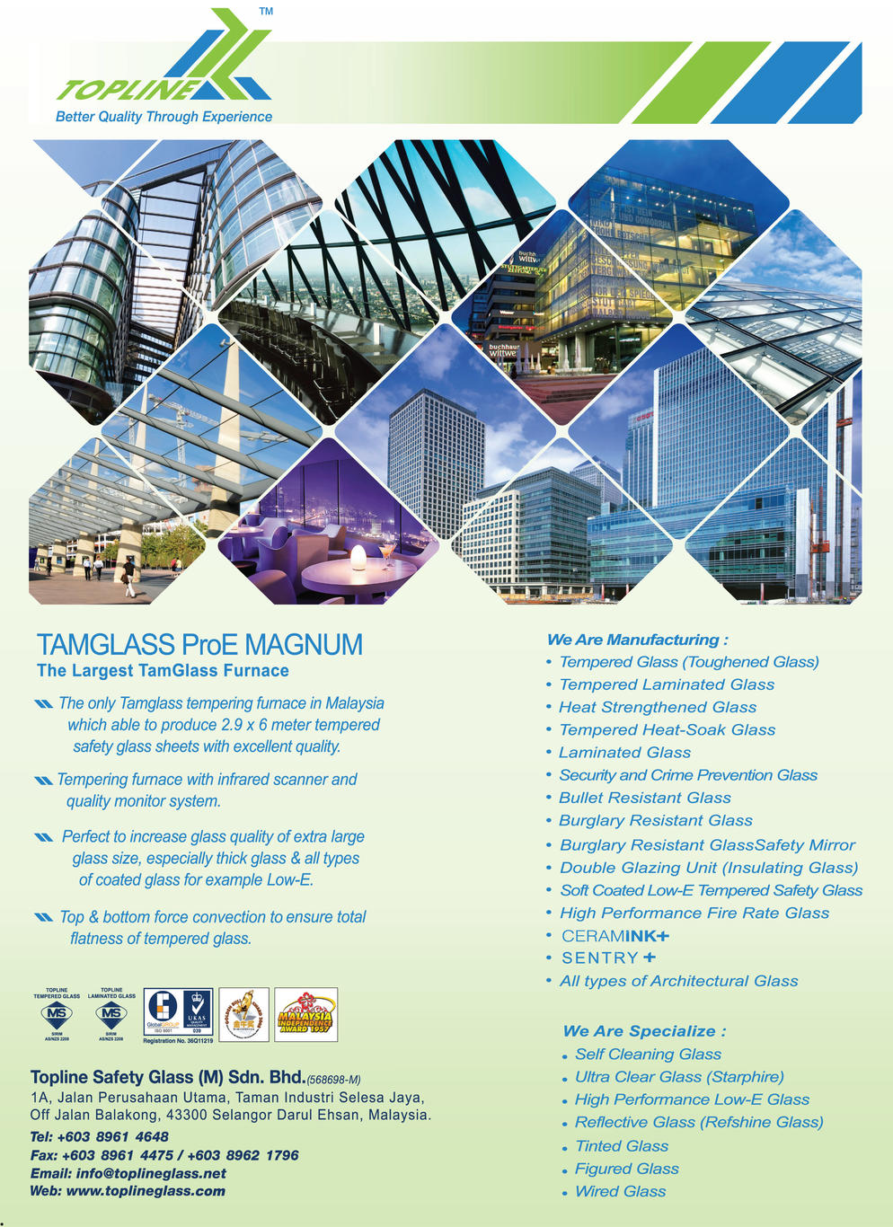Topline safety glass m sdn bhd - 03 8961 4648. This type of auto glass is composed of two layers of glass bonded through an inner vinyl layer that helps prevent the glass from separating on impact. Established in March 2015 SGPAM is principally involved in promoting and establishing highest possible standards for safety glass products in Malaysia.